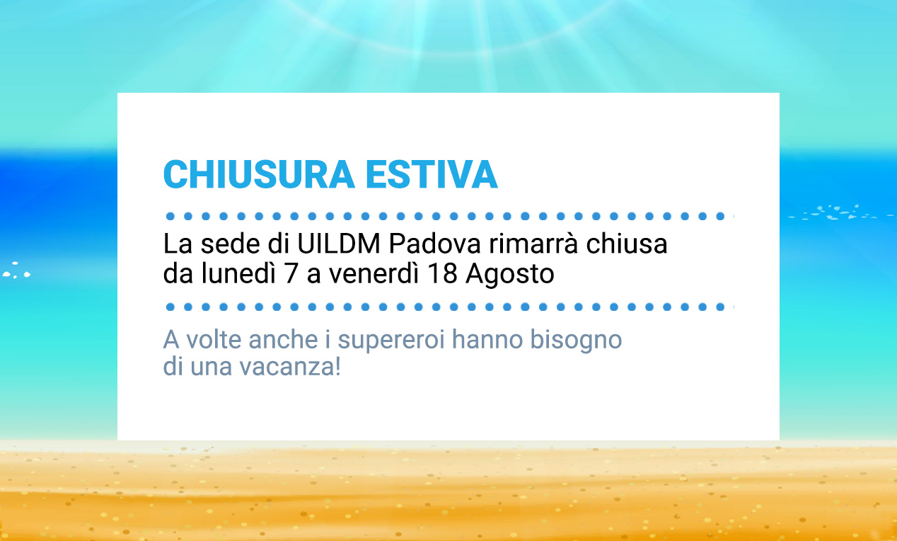 La sede di UILDM-AISLA Padova resterà chiusa nelle due settimane centrali di agosto: