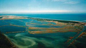Parco del delta del Po, dove il fiume abbraccia il mare.