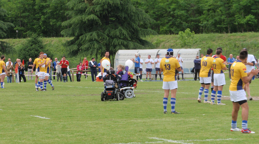 La giornata è iniziata con il pranzo a base di fritture, panini e ottime birre, il tutto servito dalla squadra under 20 sotto il tendone del “terzo tempo”. La finale del campionato di rugby di serie B è iniziata alle ore 15.00, con il calcio d’inizio riservato alla nostra associazione. Nell’intervallo della gara spazio alla premiazione del capitano della Coco Loco, la squadra di hockey con carrozzine elettriche di Padova, e ai ringraziamenti ai maggiori donatori UILDM del 2012.